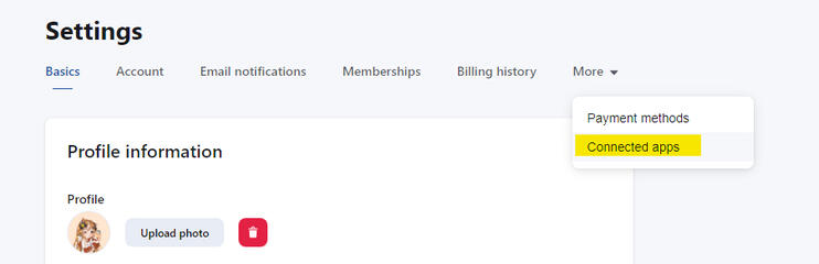 Step 3: It'll pop up a drop down menu. Select the connected apps tab.